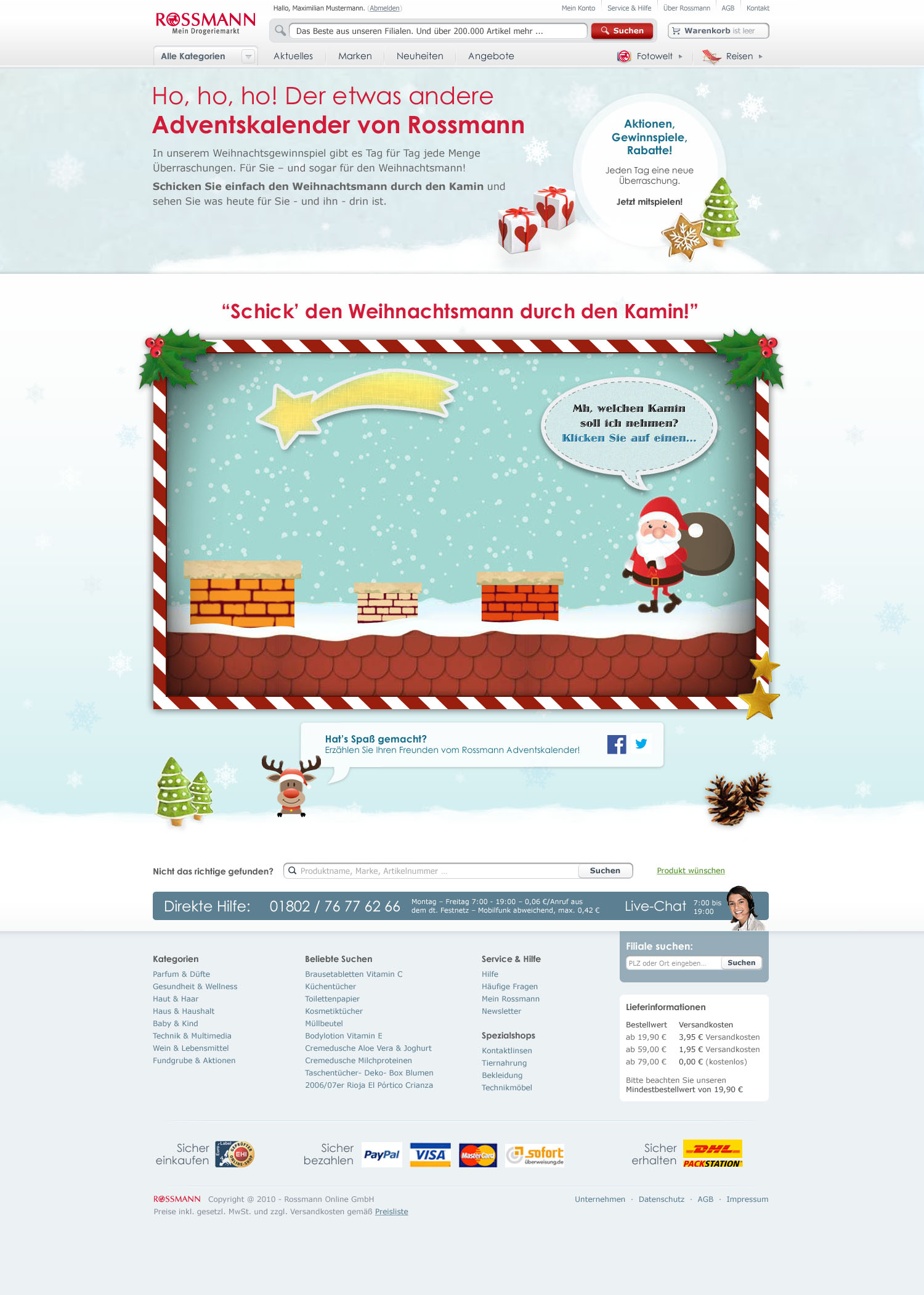 Online Adventskalender für Rossmann Onlineshop